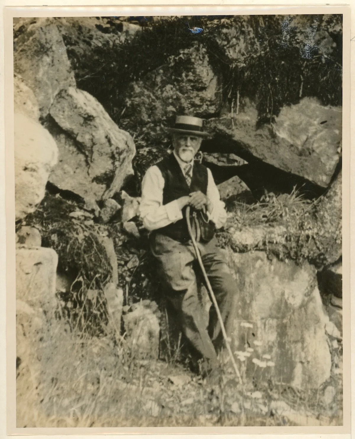 The story of Thuya's history begins in 1880—eighty-two years before Gus carved the gates—when Bostonian and rusticator Joseph Curtis (1841-1928) traveled to Asticou. A landscape gardener, Curtis discovered woods populated with pines, cedars (Thuya occidentalis), and lichen and moss-covered granite outcroppings on the side of Asticou Hill (now Eliot Mountain). The congenial company of nearby local islanders, as well as conversations and hikes with friends from Boston who also were discovering the rustic beauty of Mount Desert Island, awoke his desire to spend more time on that hillside. He purchased land there.