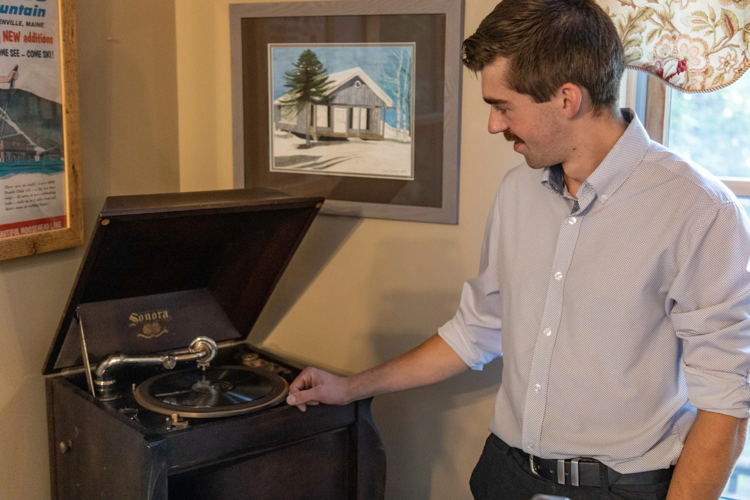Tom shared stories and his knowledge of local history with us. He spoke about the woods: “In the Lumberman’s Museum, there’s a lumberman's exhibit, and a lot of those chainsaws belonged to my great-grandfather Johnny.” He talked about steamboats, kick-sleds, diaries, and an early floor-model crank record player. The area’s past came alive for us, populated by Tom’s ancestors.