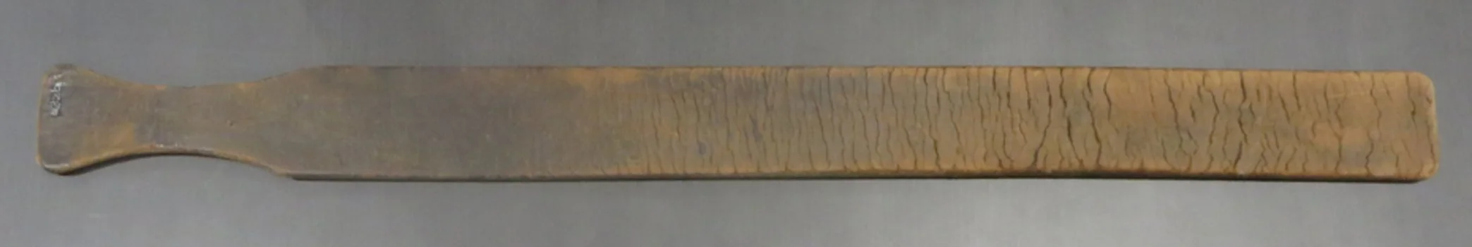A strap similar to this would have been used for corporal punishment at Glen Mills school in the 1930s. Seen here is leather school strap circa 1920, part of the Victorian Collections at the Federation University Australia Historical Collection.